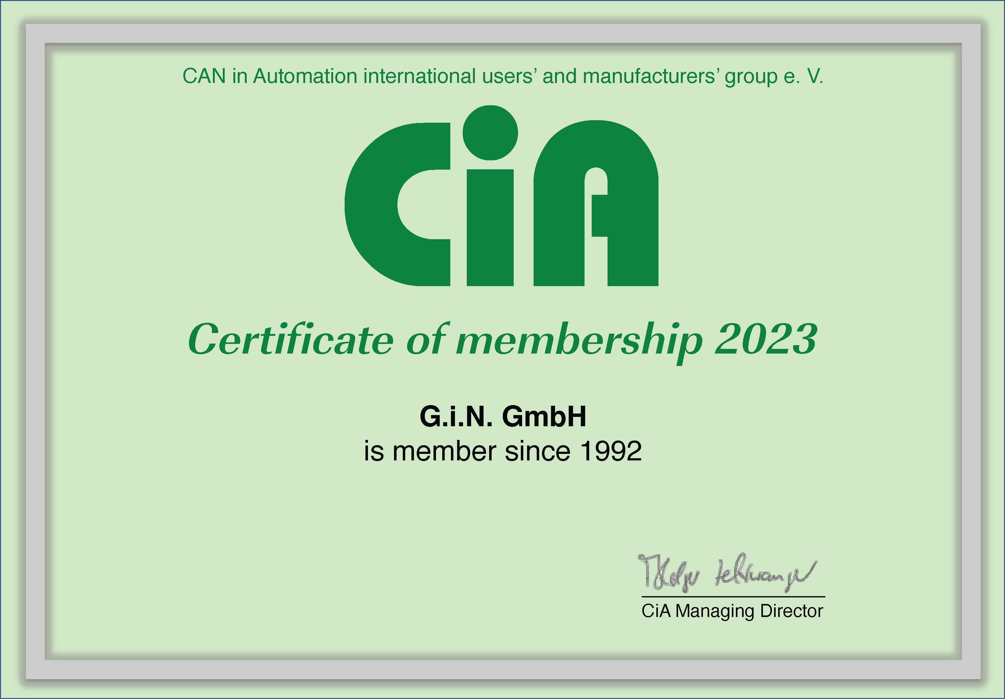 G.i.N. GmbH has been a founder and member of the CiA associationCiA association for over 30 years.