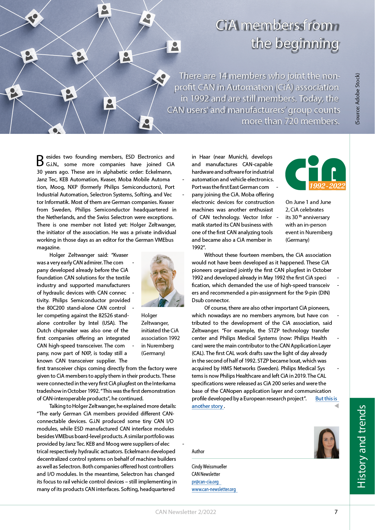 In 1992, the non-profit association for international customers and manufacturers for CAN (Controller Area Network) was founded.